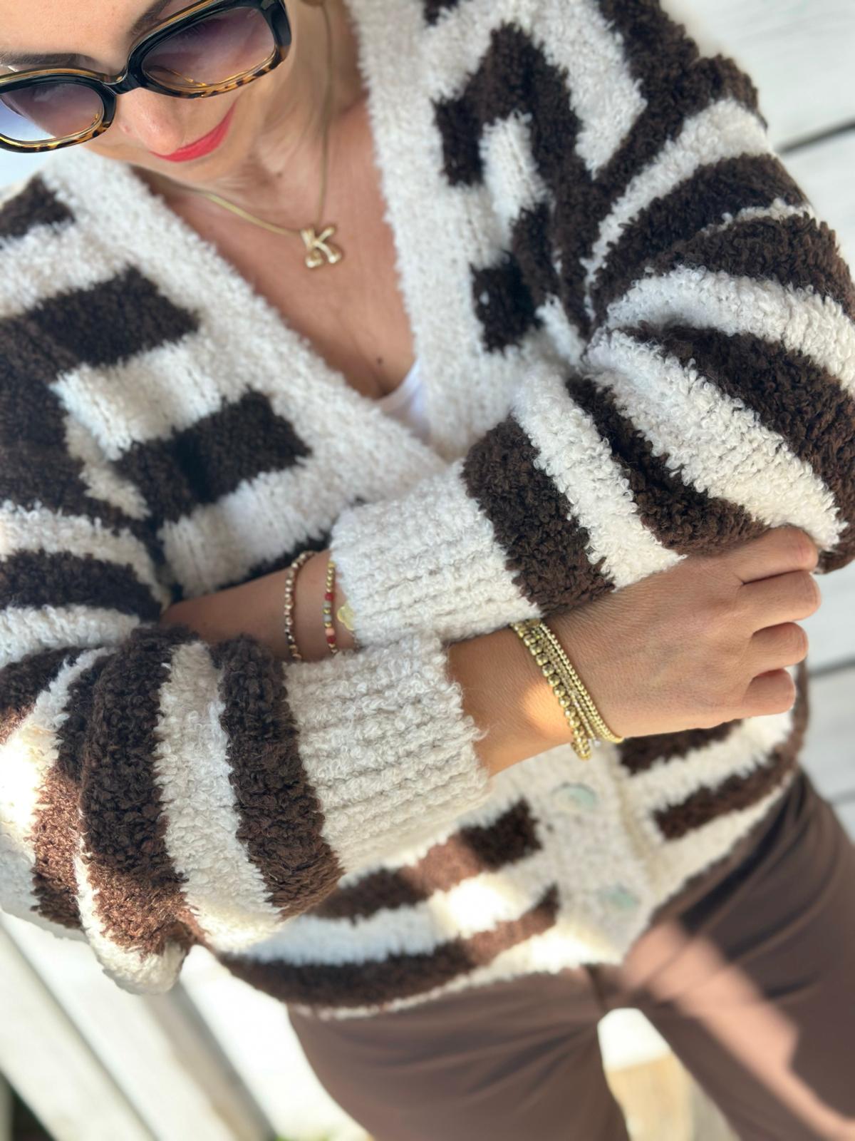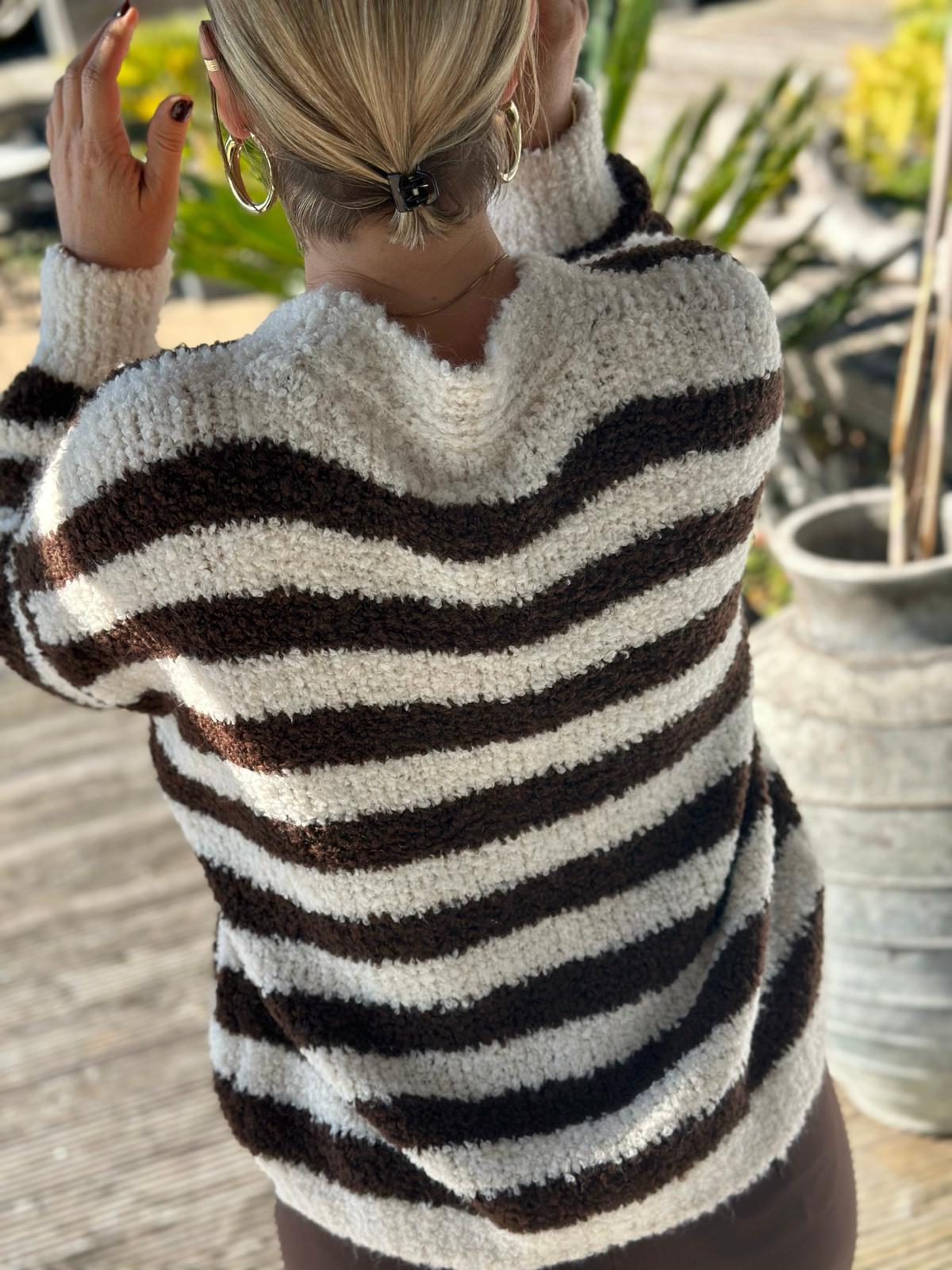 Gestreifte Grobstrick Jacke in Cremé/Chocolate