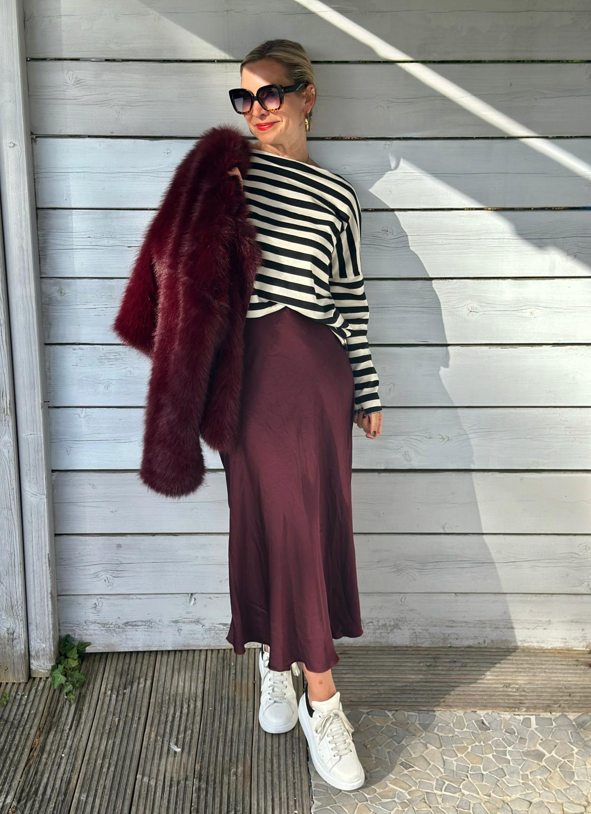 Glänzender Onesize SATIN Rock in Bordeaux