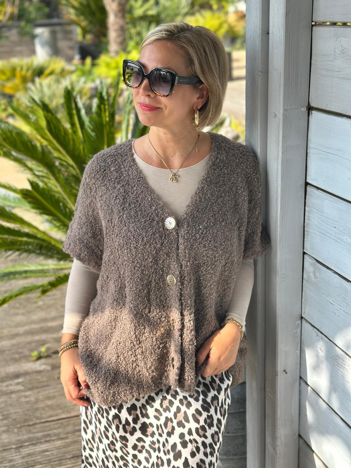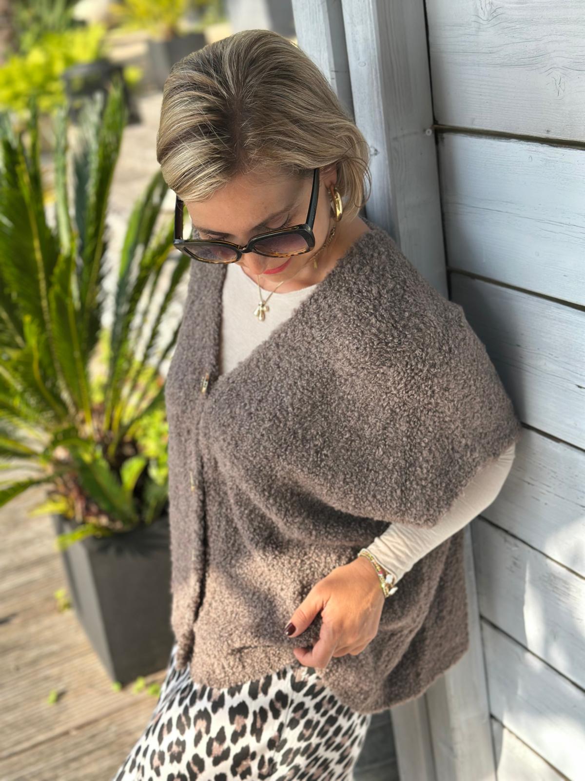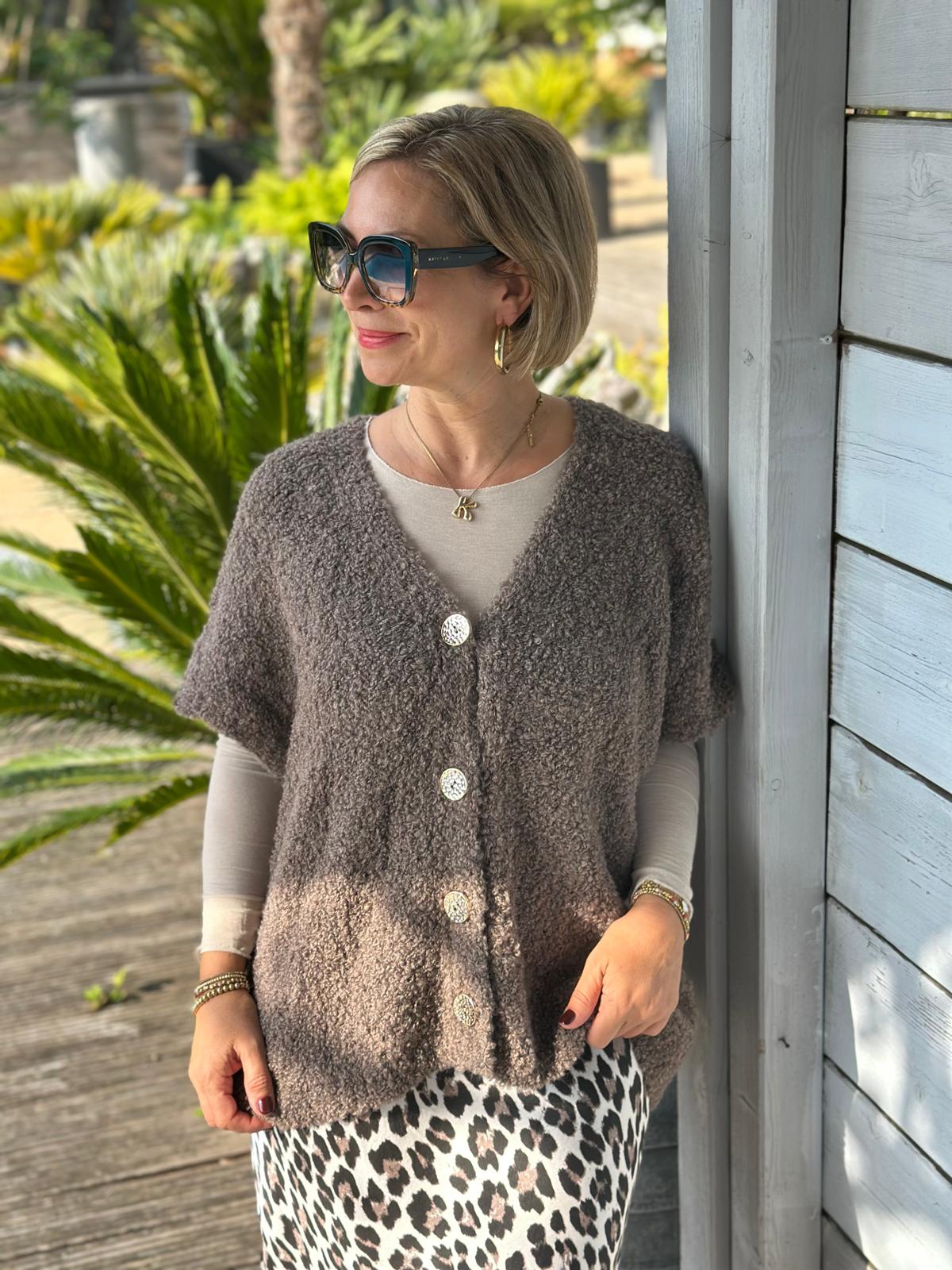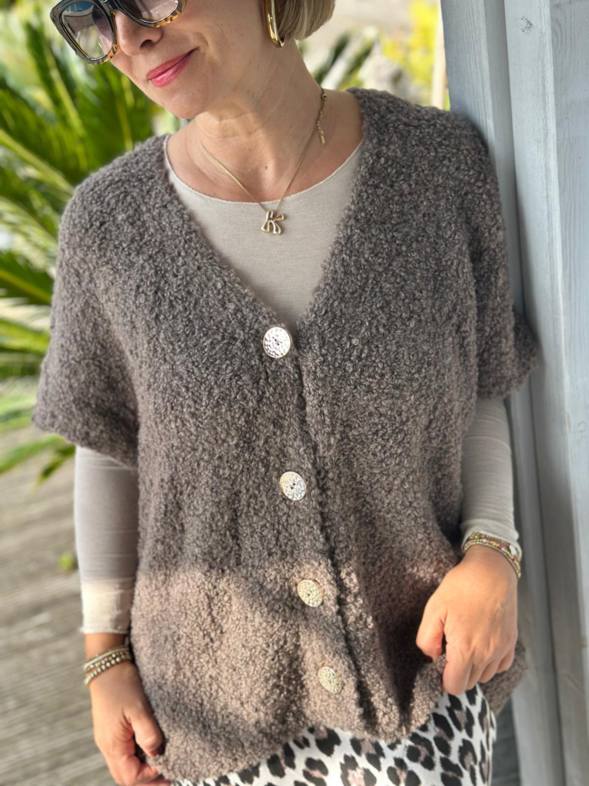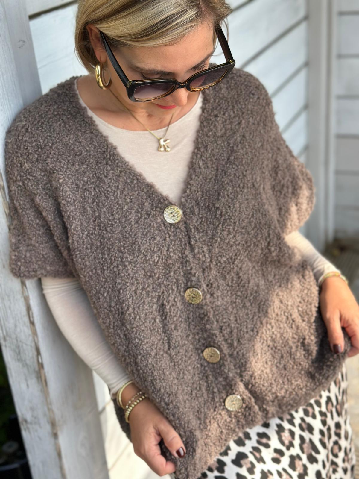 Ein ONESIZE Teilchen welches nicht nur super kuschelig ist, sondern mit seinen großen, goldenen Knöpfen auch noch ein echter Hingucker!