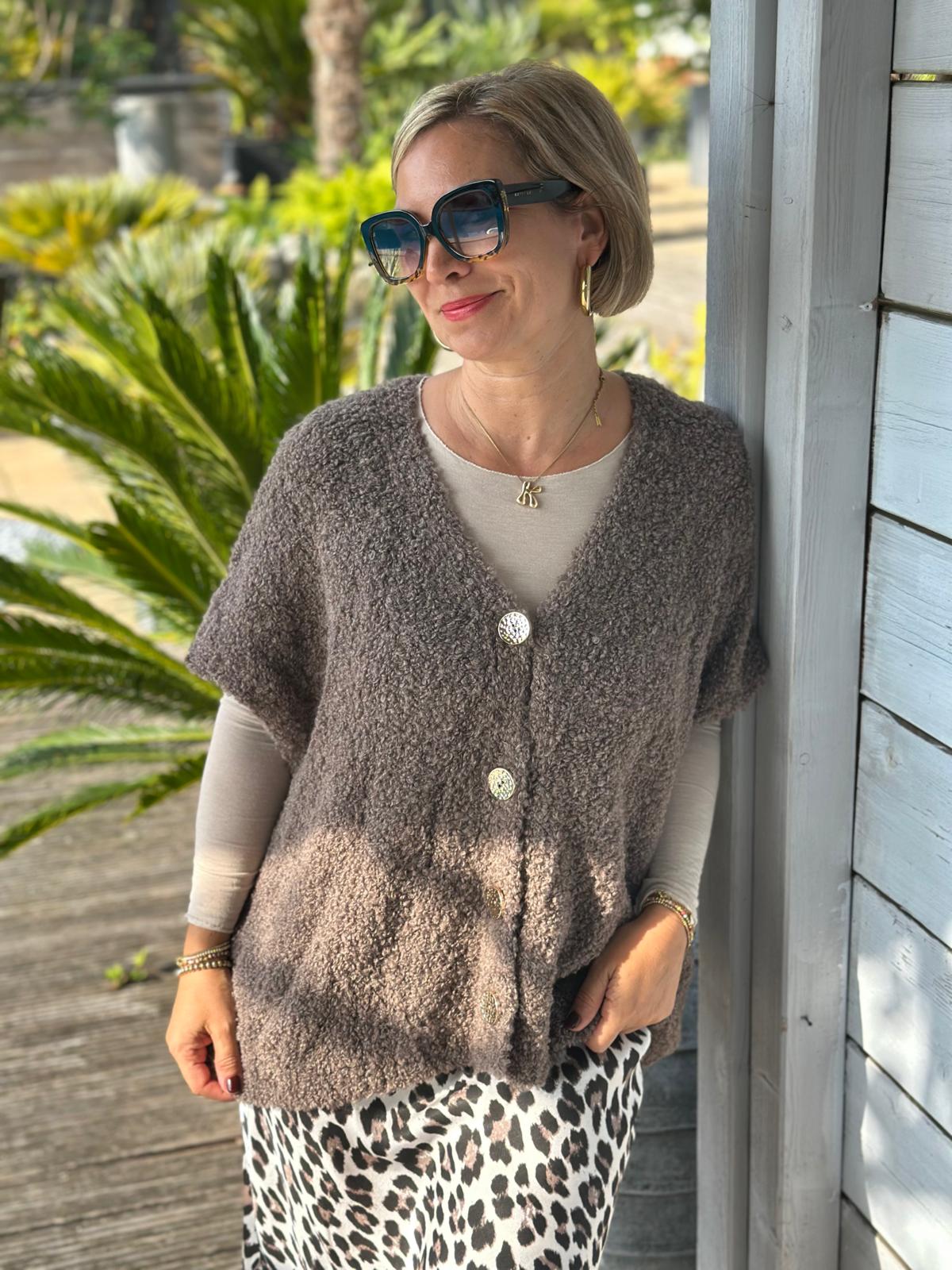Grobstrick Weste in Taupé mit goldenen Akzenten