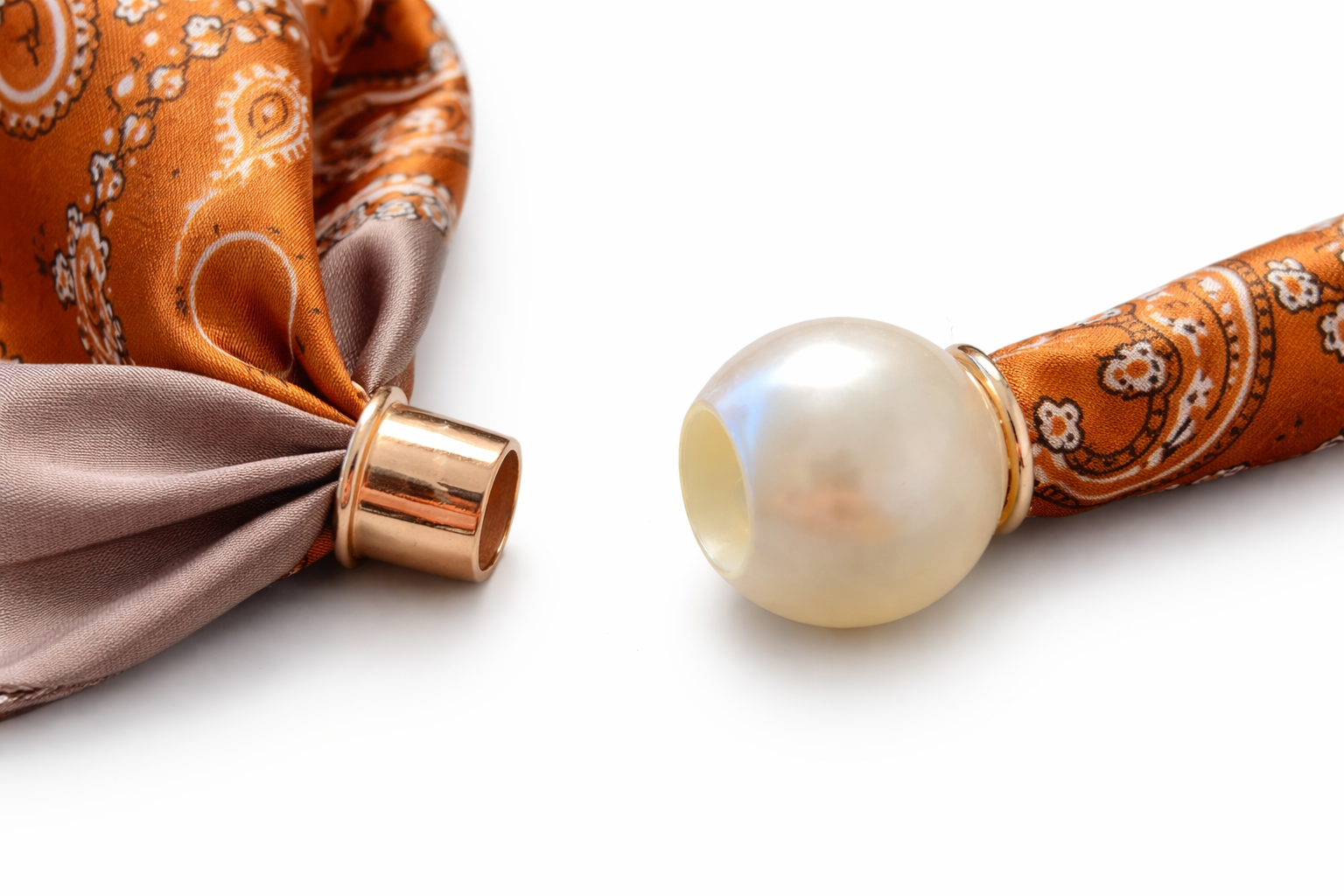 Halstuch Paisley Chic mit Perlenverschluss – Caramel