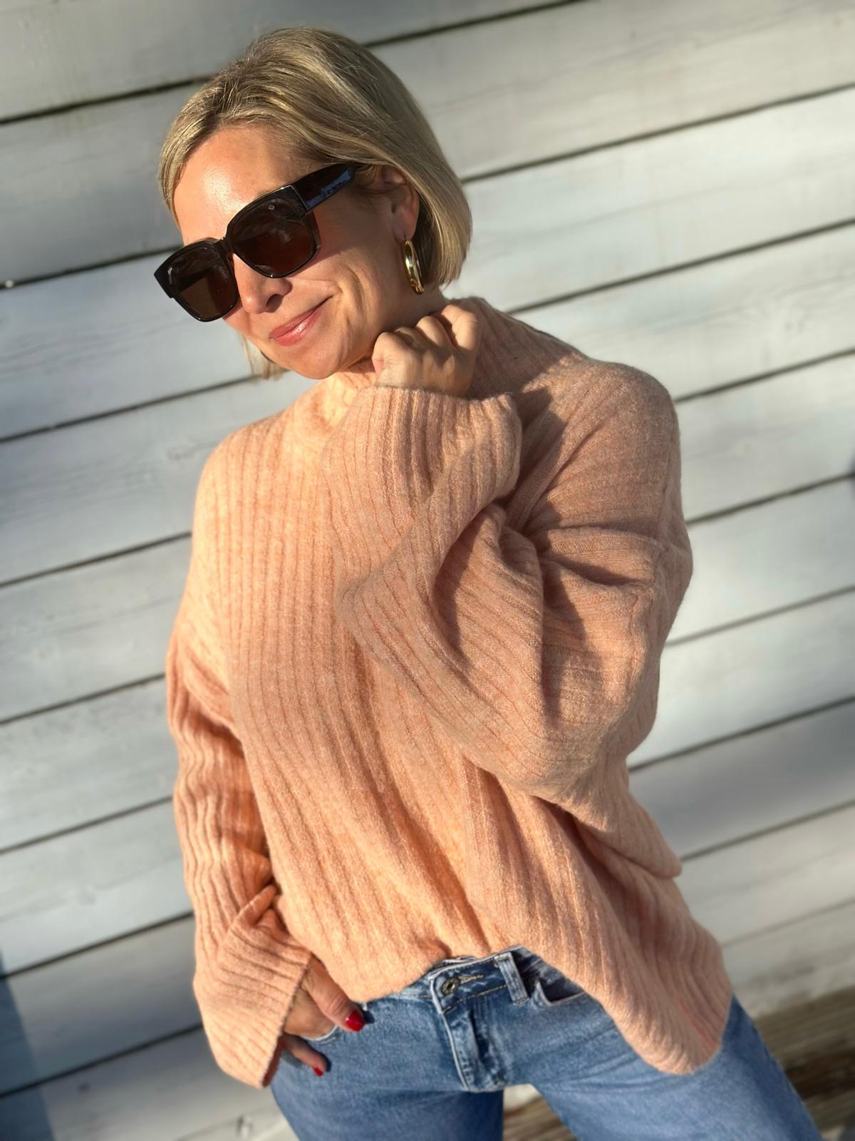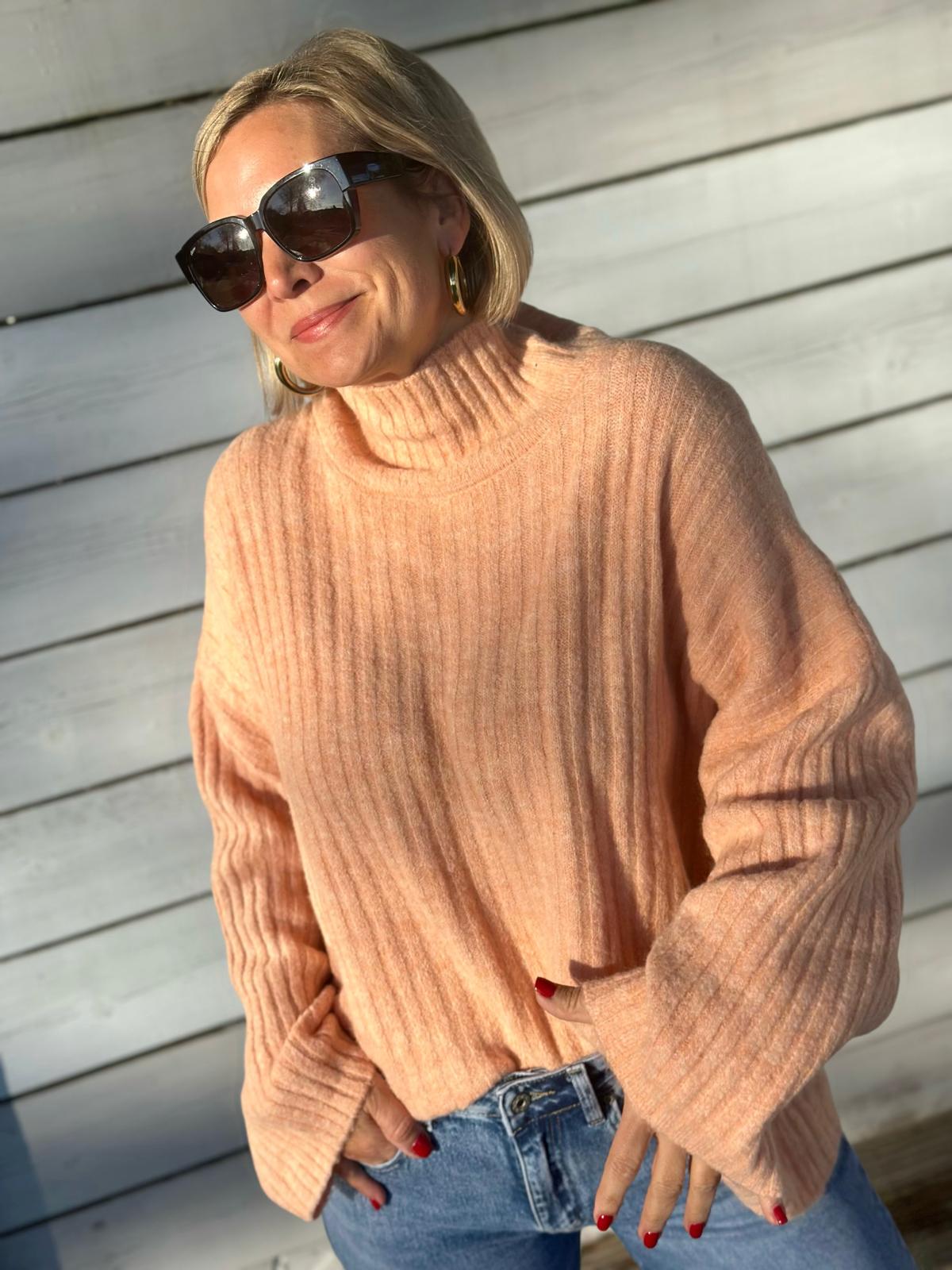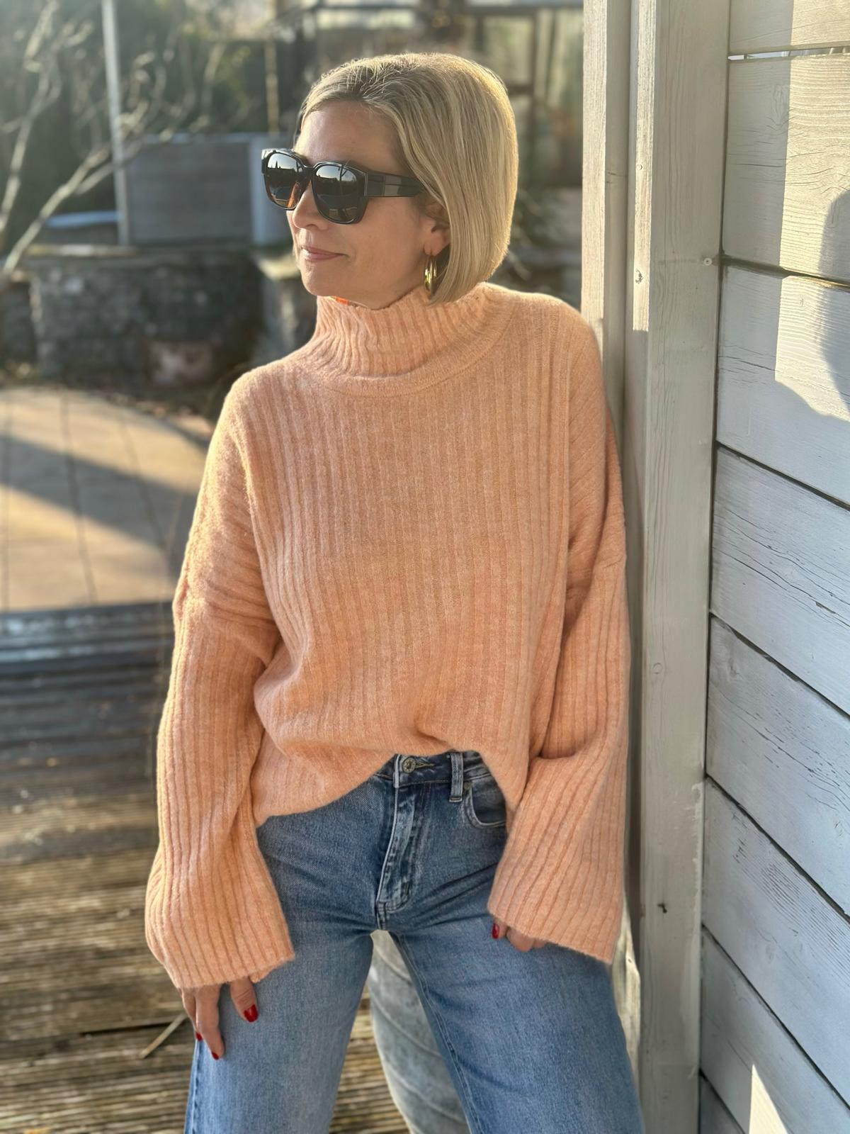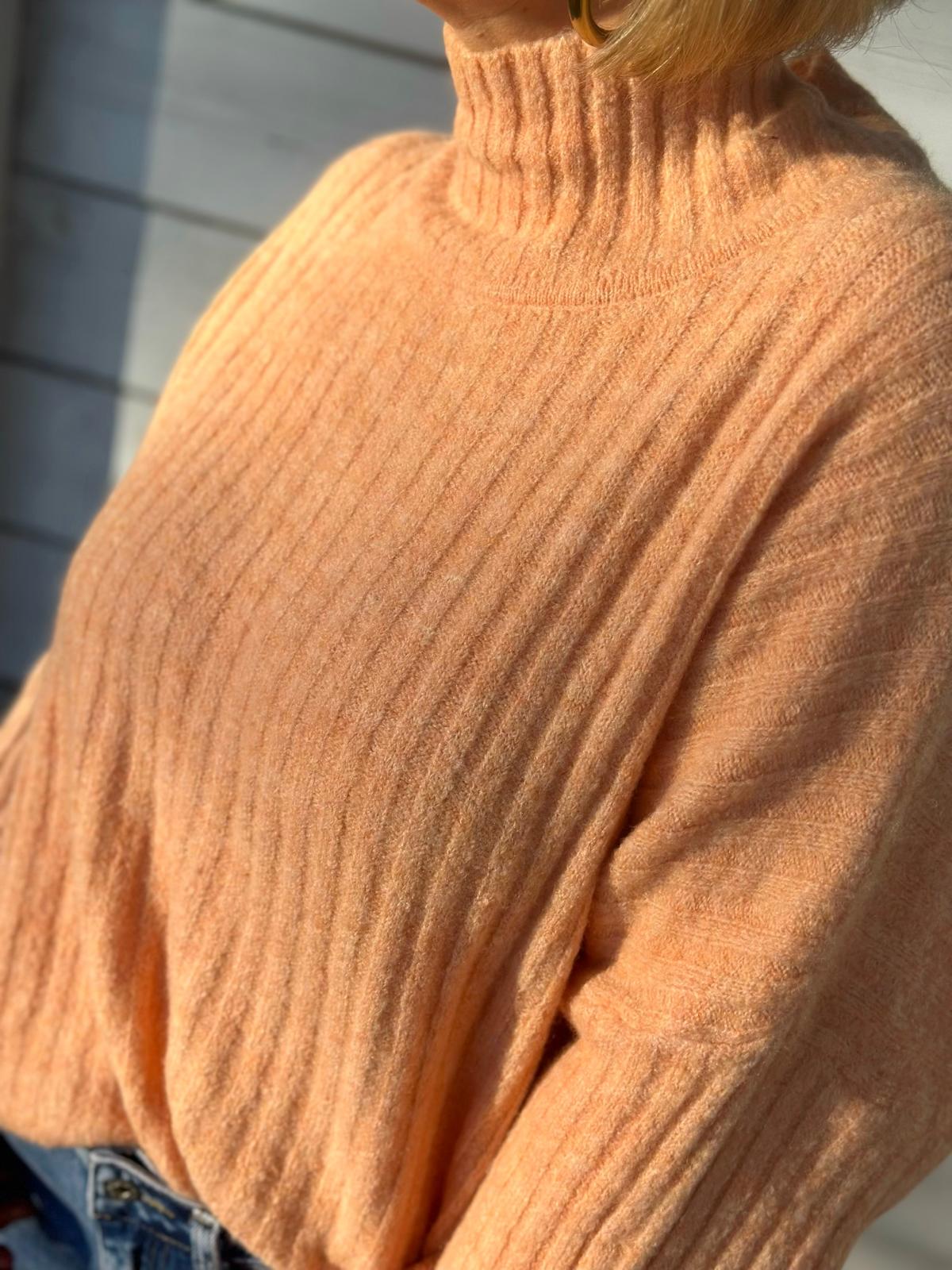 Kuscheliger Rippstrick-Rollkragen in Apricot