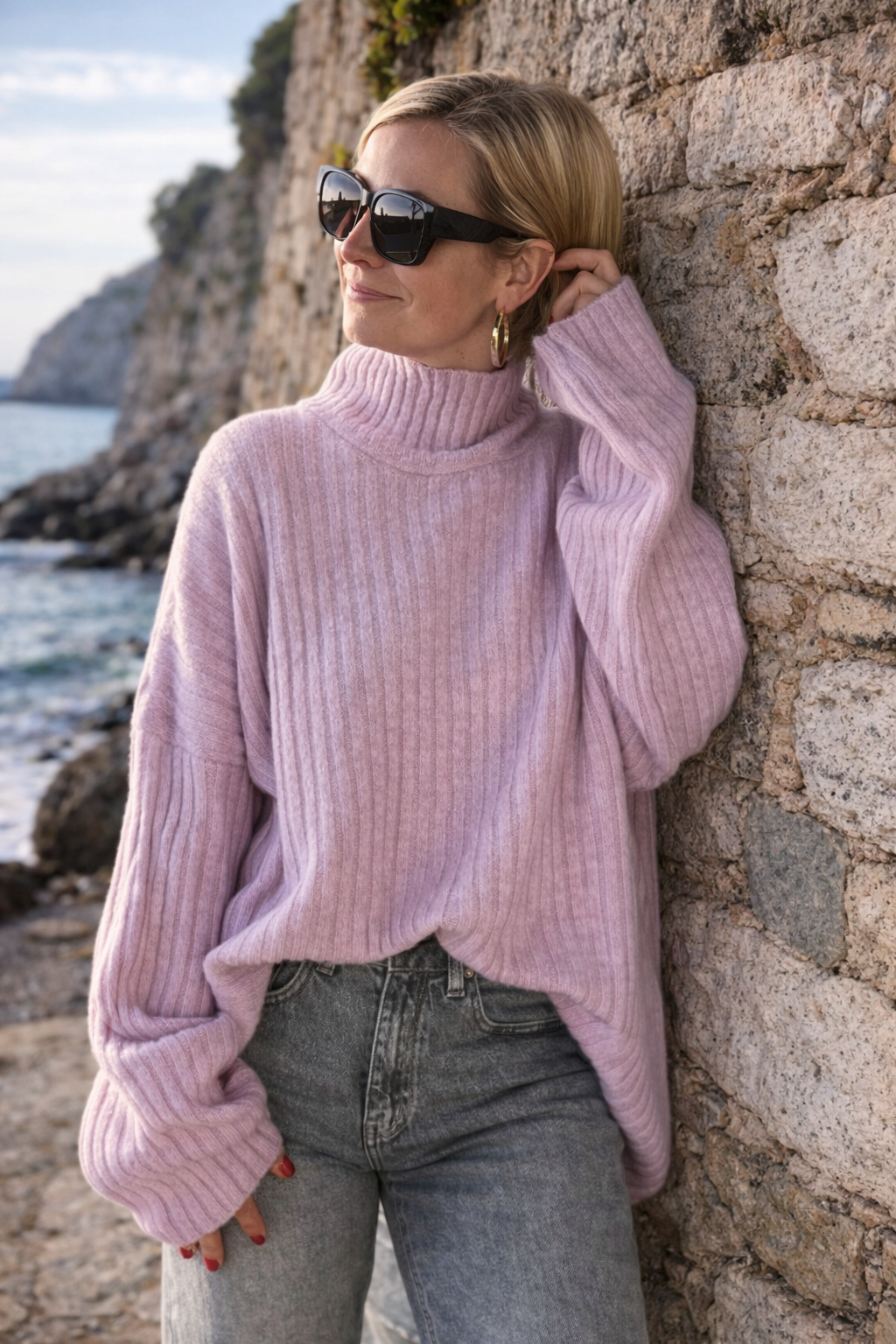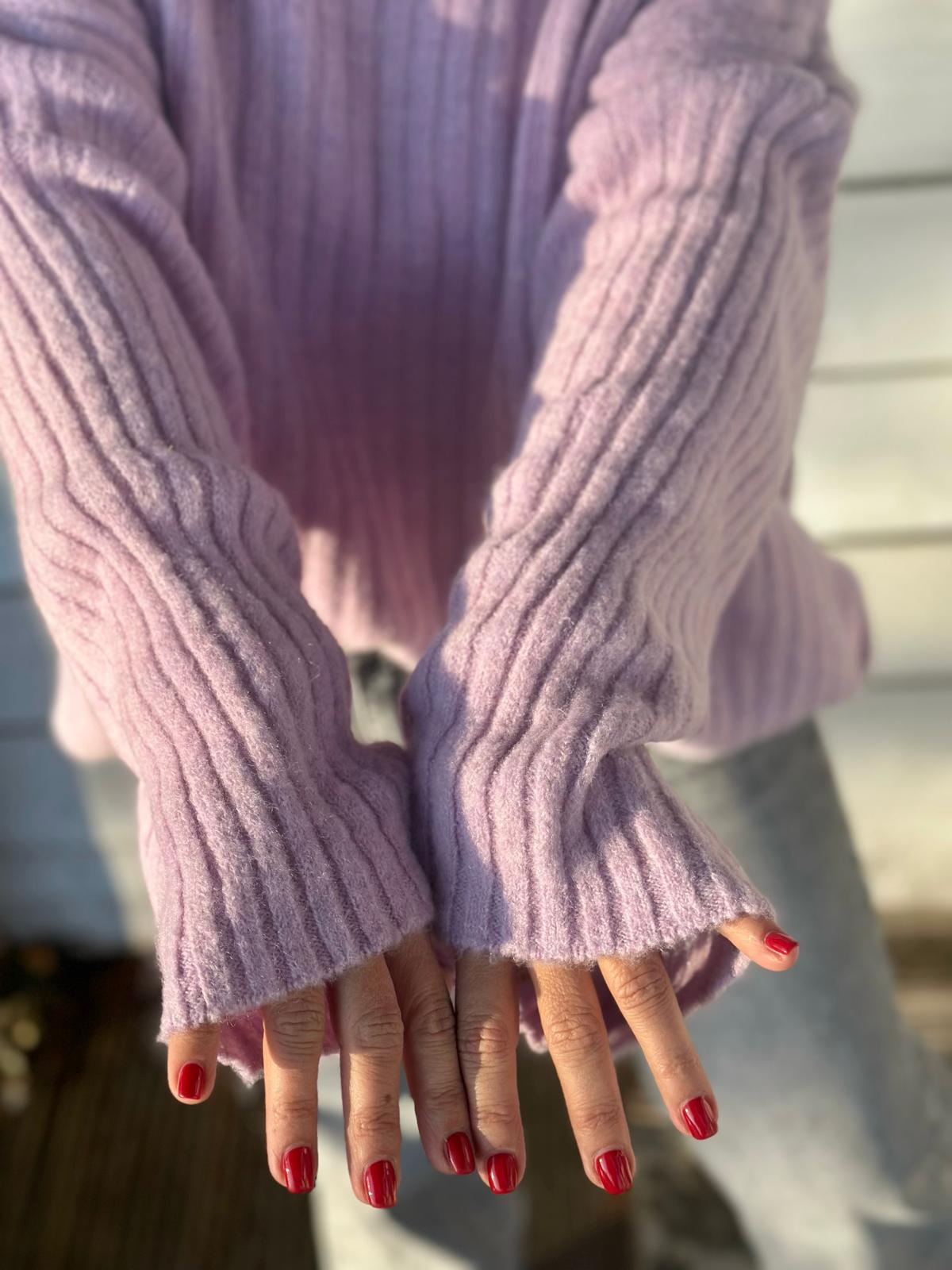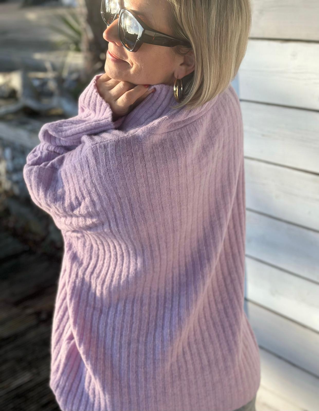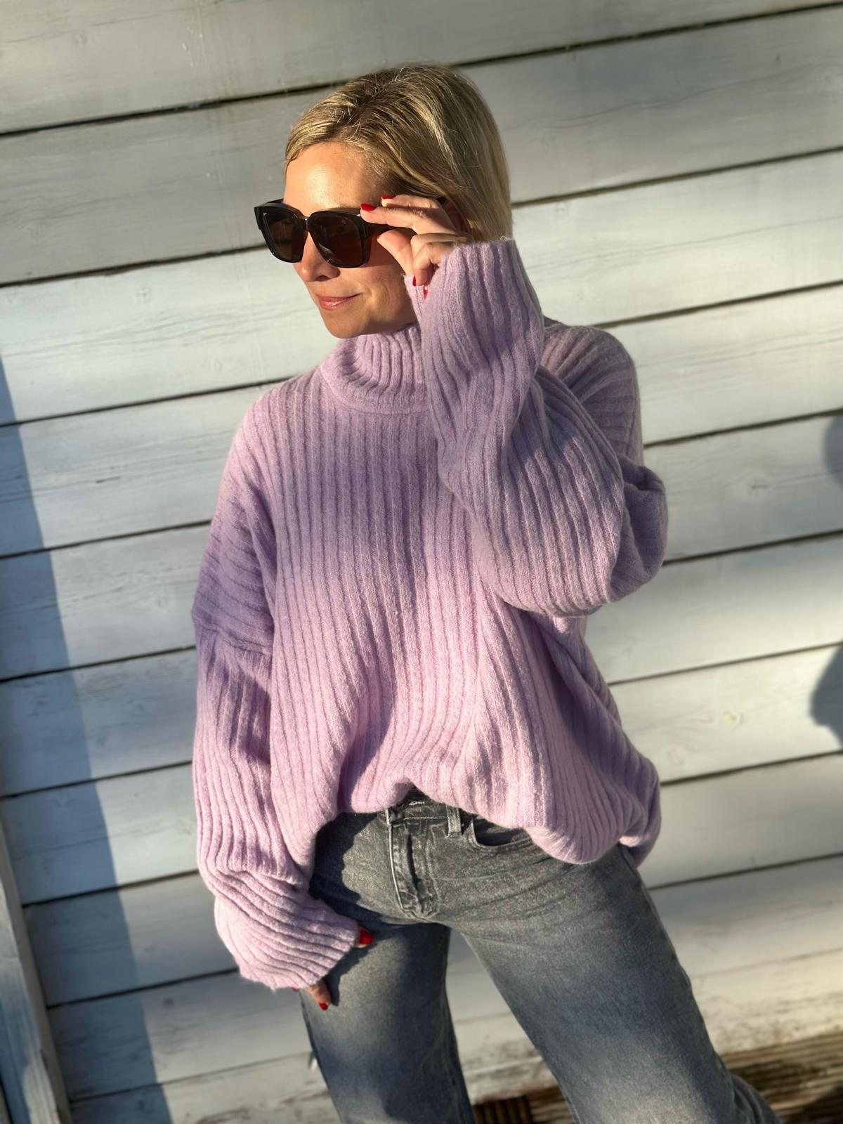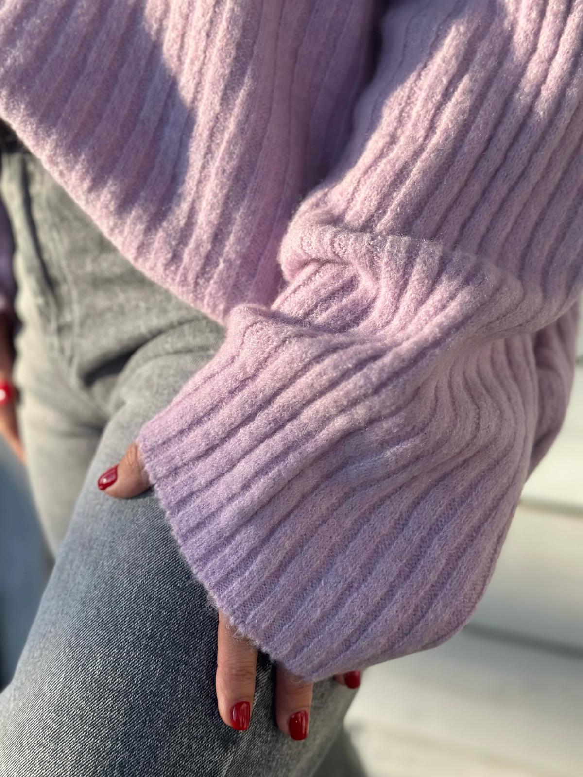 Kuscheliger Rippstrick-Rollkragen in Flieder