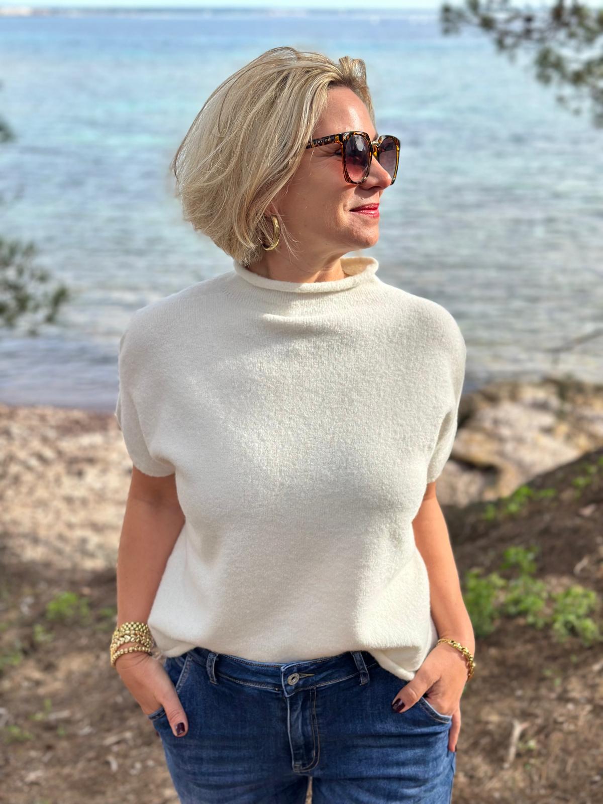 Unsere stylischen Kurzarm Pullover sind echte Highlights für den Frühling - einfach zu kombinieren und durch Onesize passend bis Größe 42!