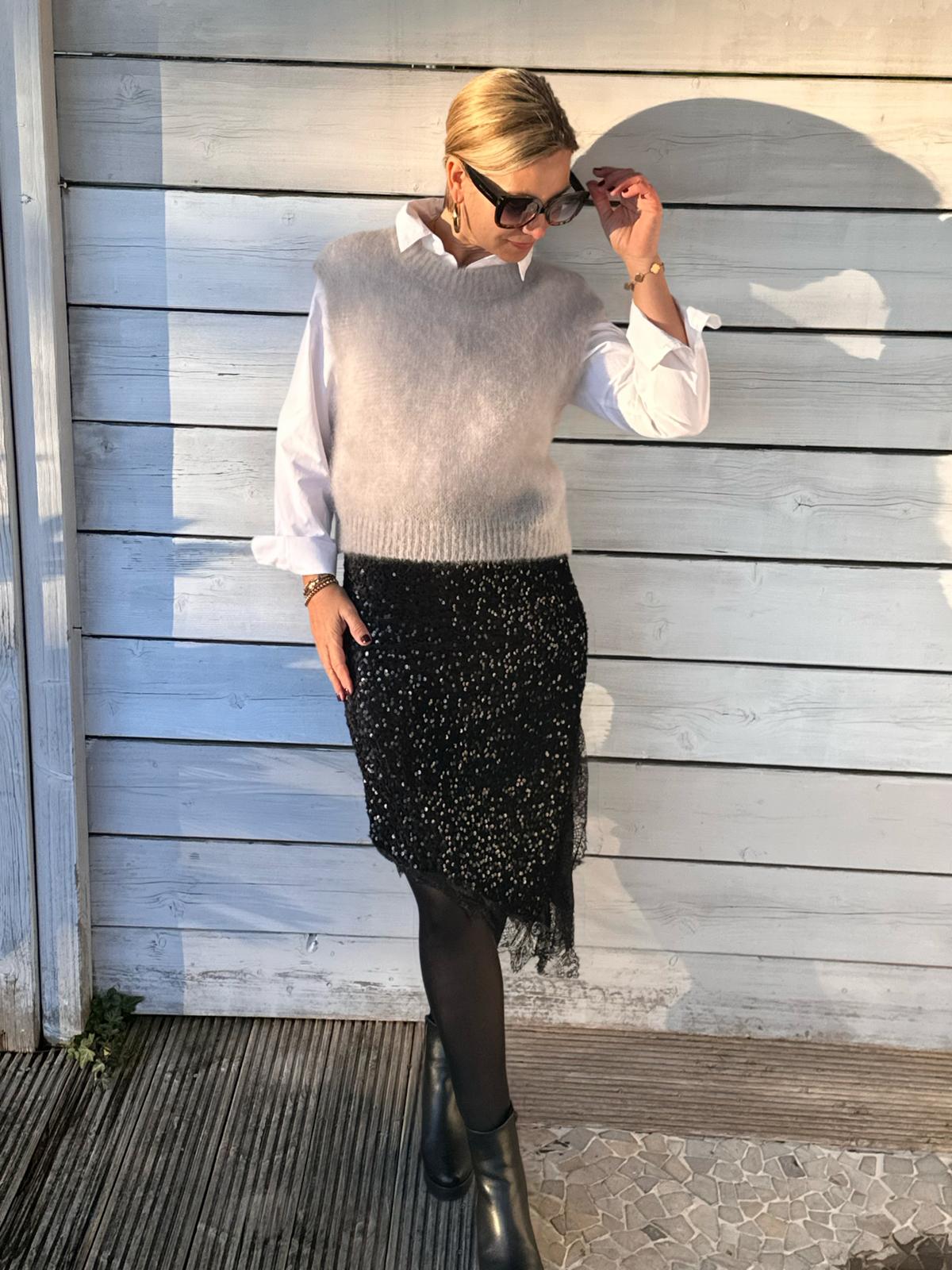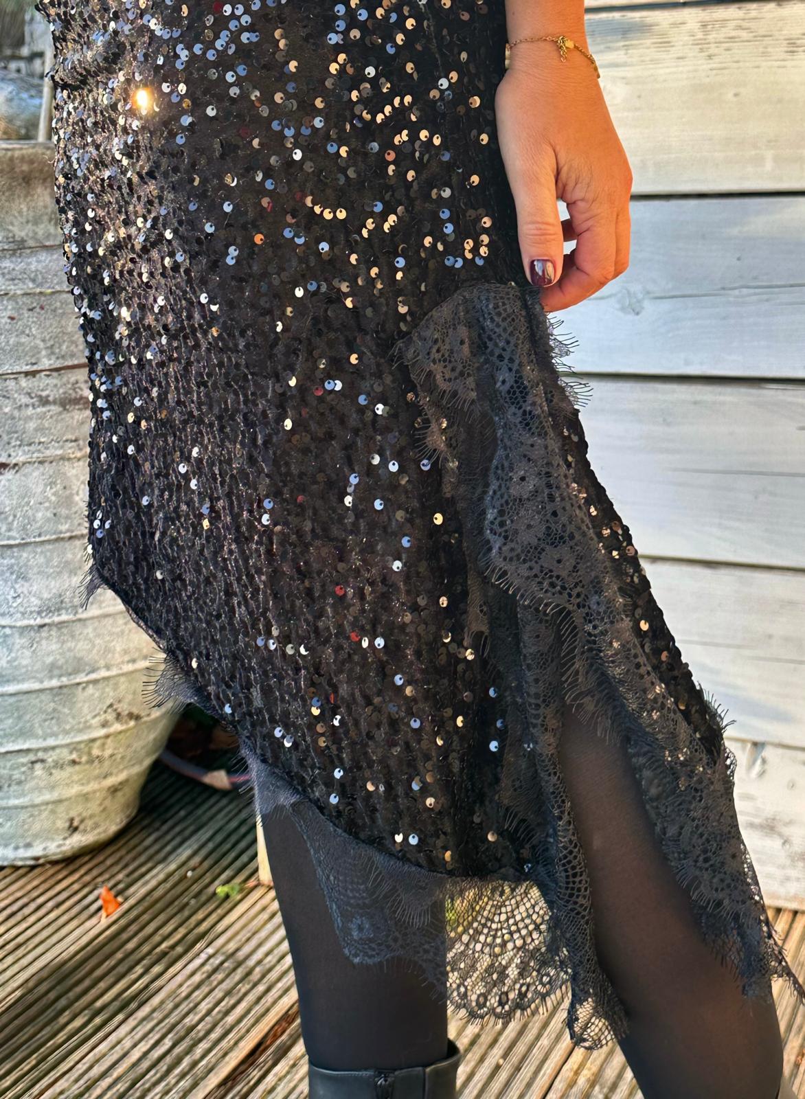 Langer Glitzer-Rock in GLOSSY BLACK
