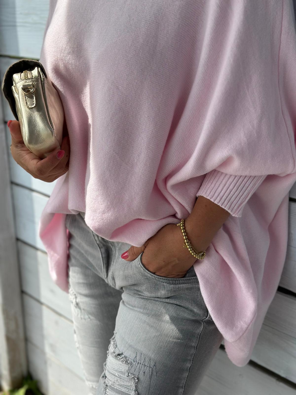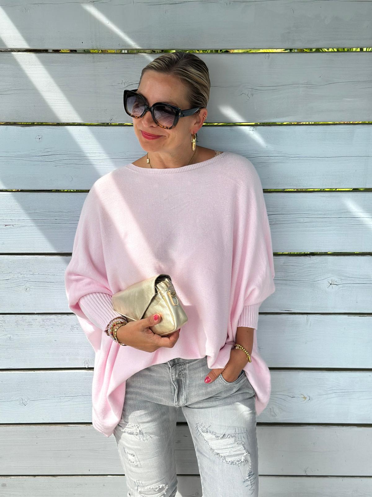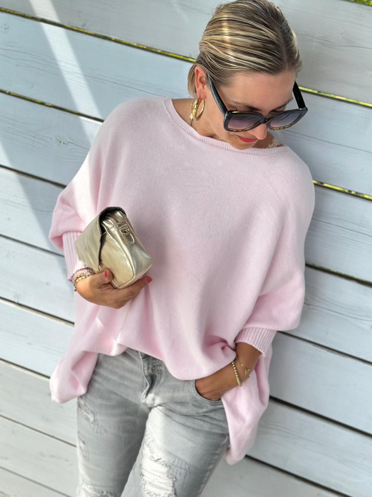 Dieser süße Onesize Pullover hat einen weiten Ausschnitt, ist lang und weit geschnitten - wodurch er super schön fällt und mega angenehm zu tragen ist!
