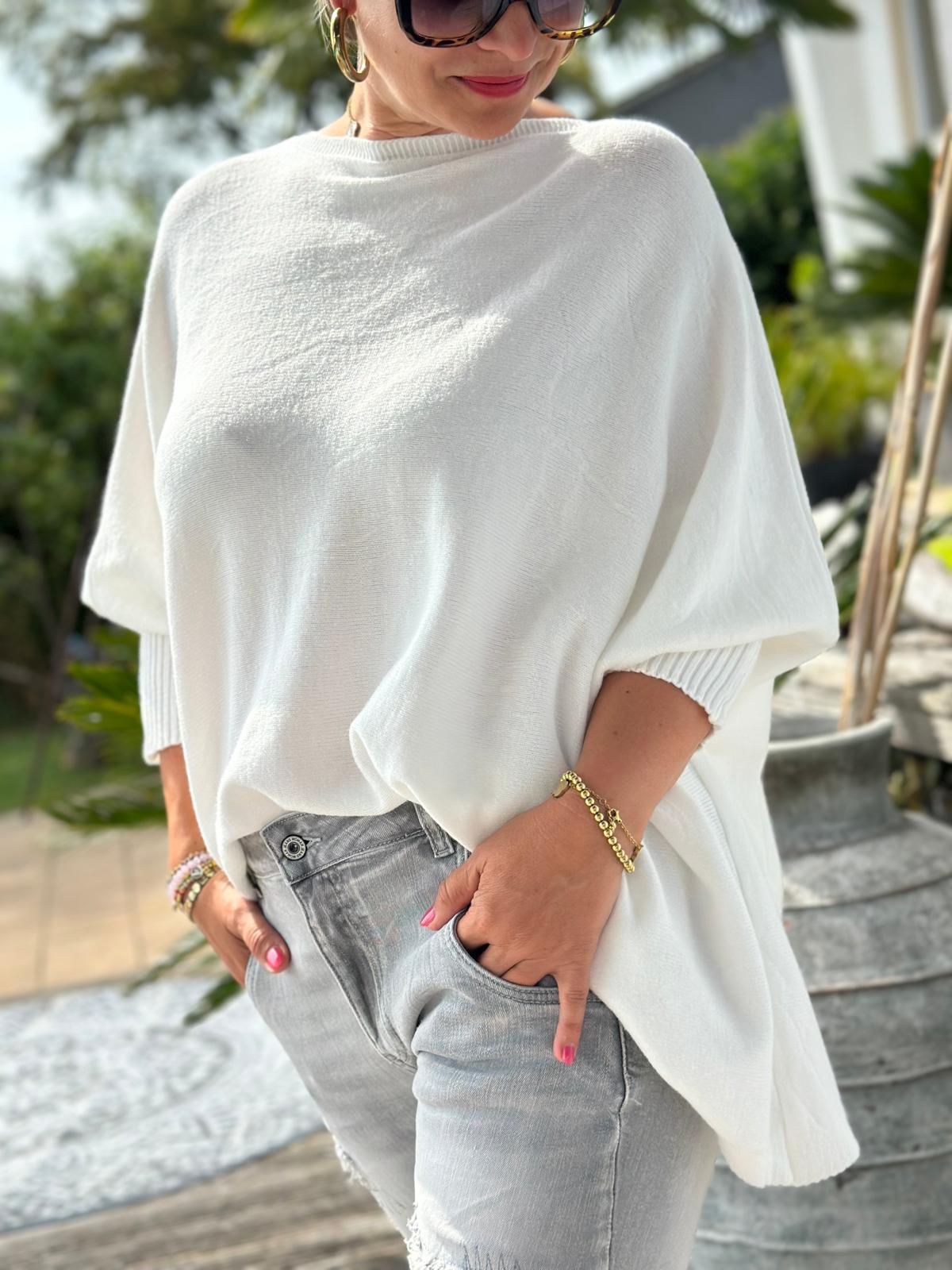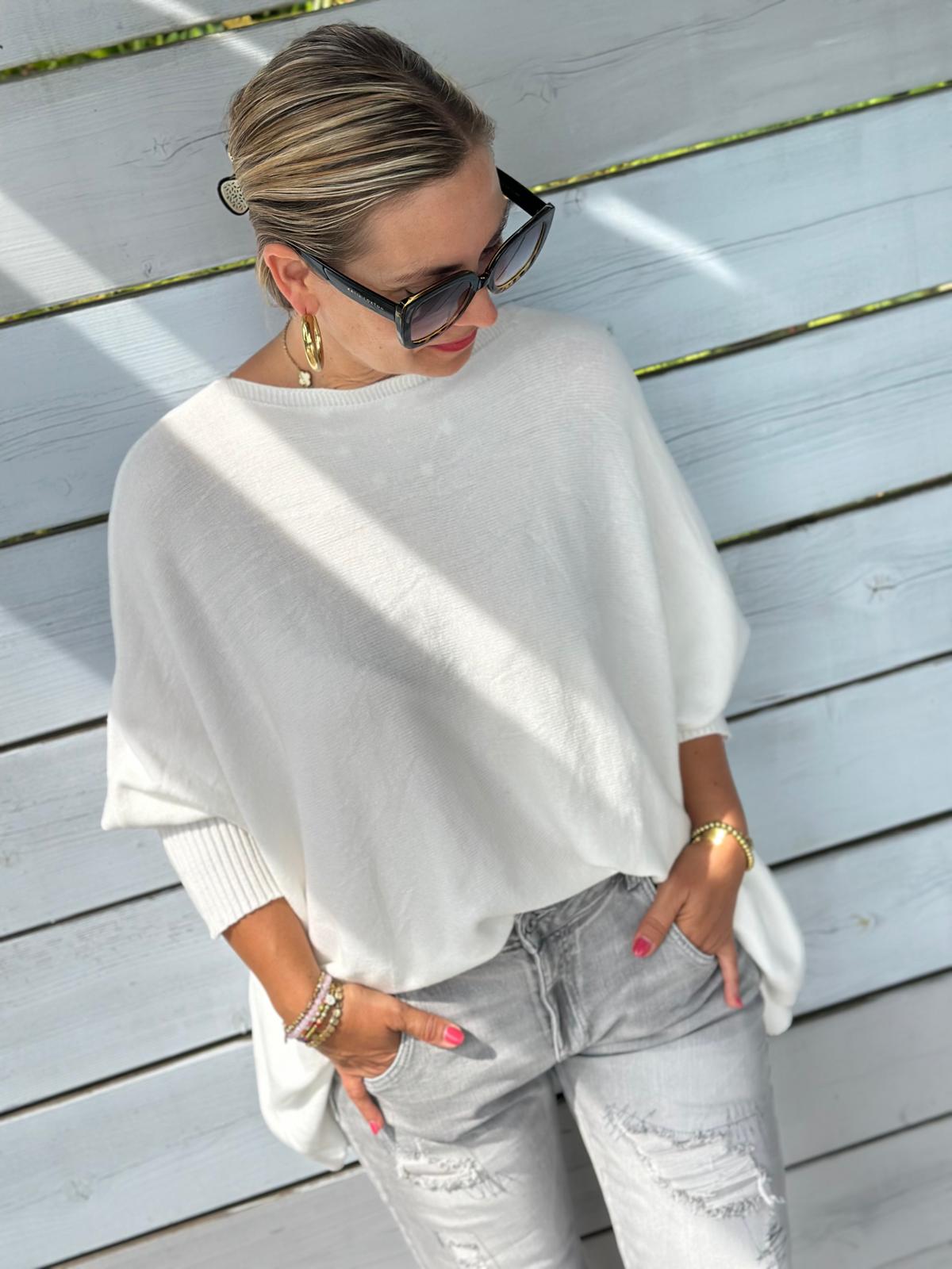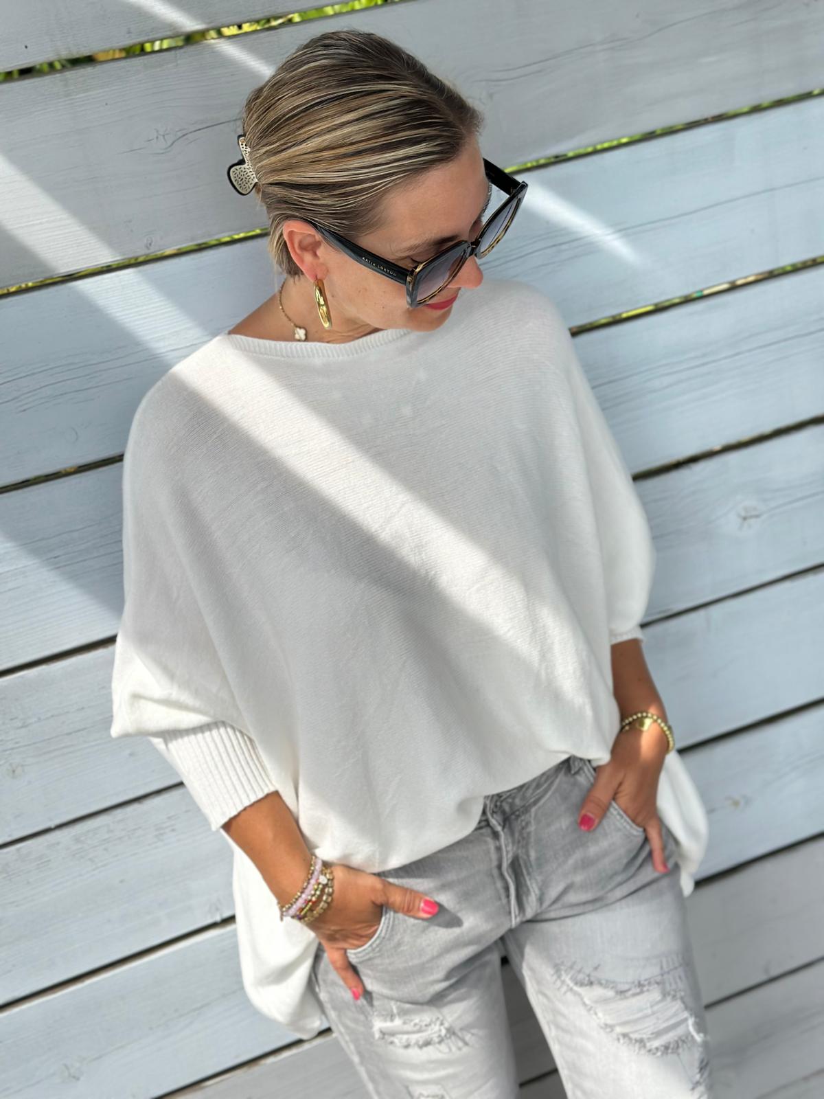 Dieser süße Onesize Pullover hat einen weiten Ausschnitt, ist lang und weit geschnitten - wodurch er super schön fällt und mega angenehm zu tragen ist!