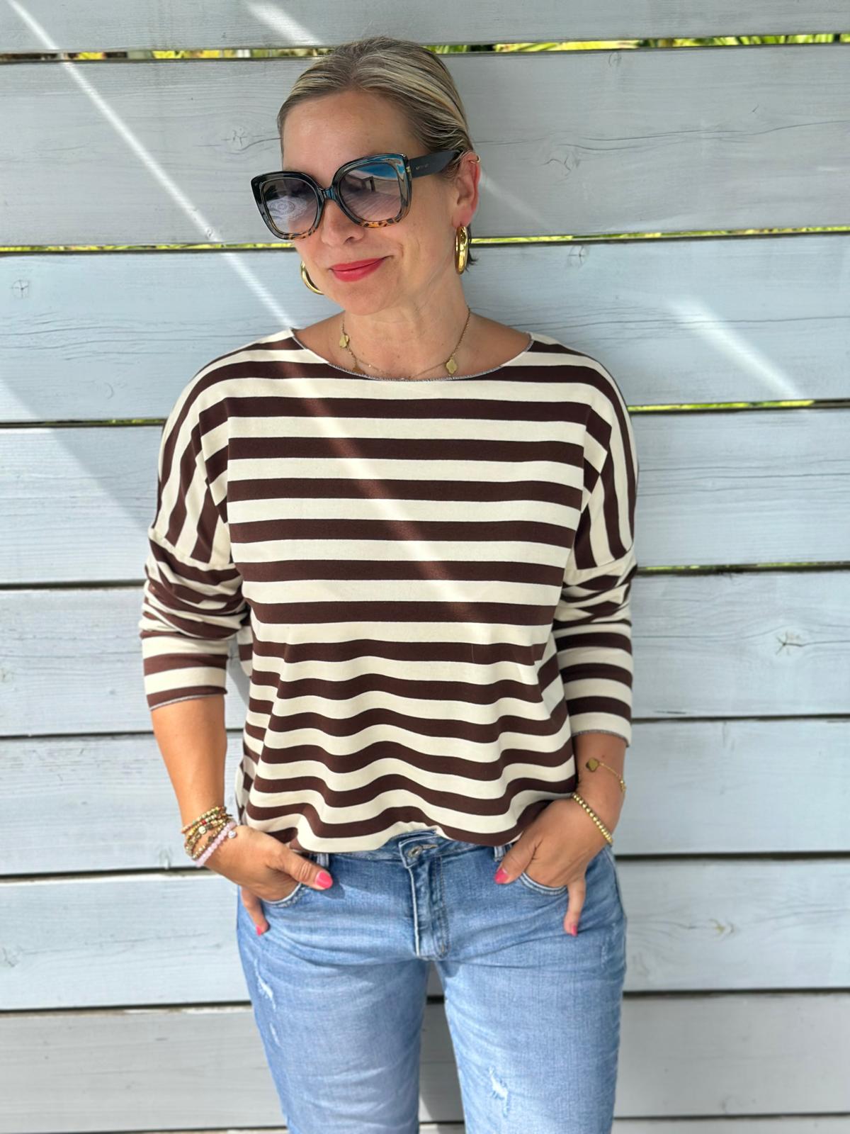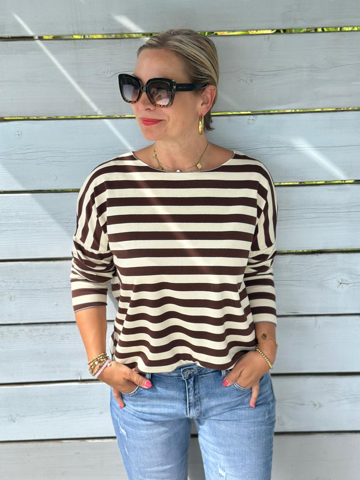Leichtes Shirt STREIFEN in Chocolate/Weiss