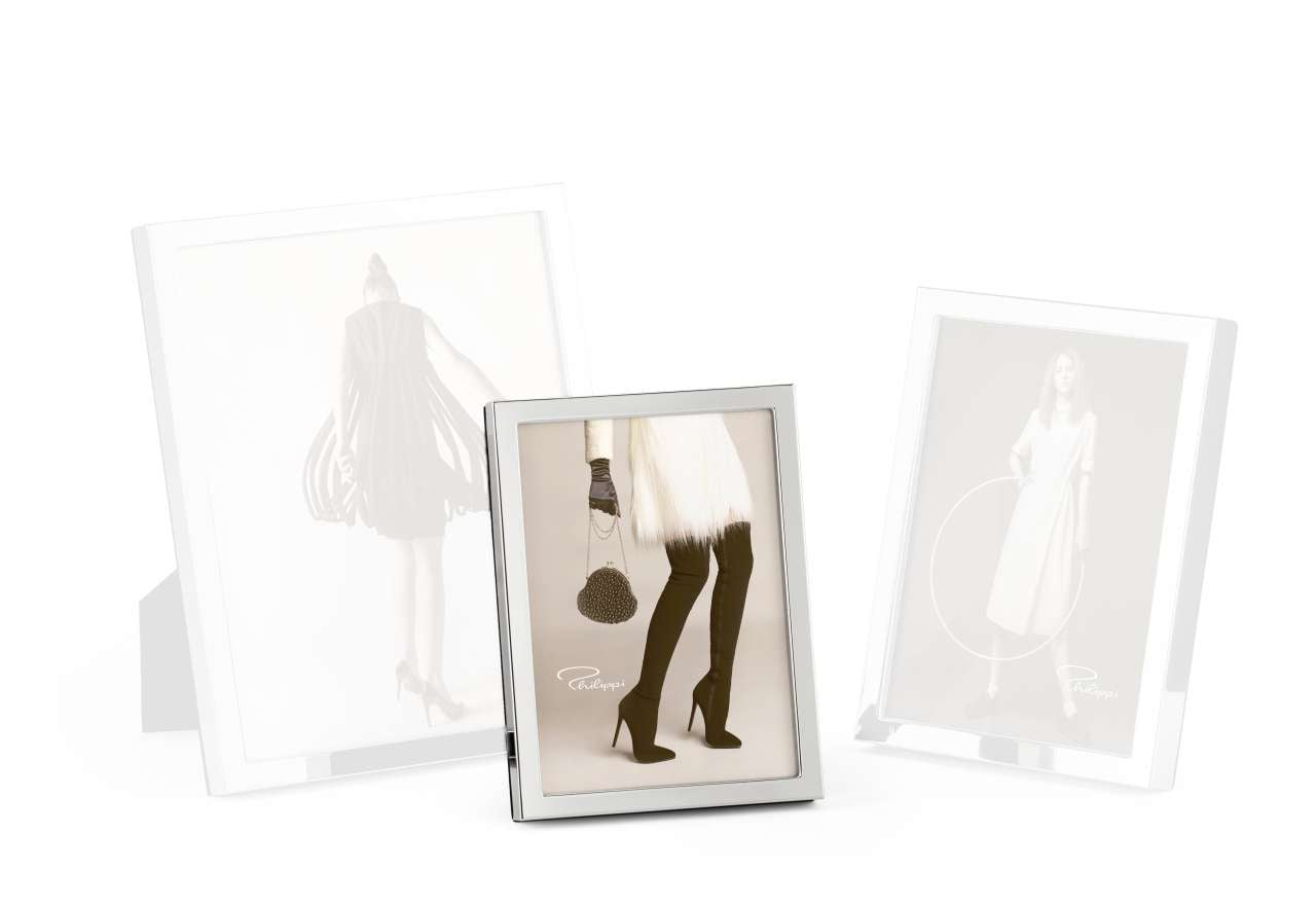 Hier posen die ultraschicken Rahmen PARIS mit den Fotos der Liebsten ausnahmsweise um die Wette. Ein bezauberndes Lächeln gegen die Strahlkraft von hochglanzpoliertem Nickel in derart schlichter Form – wir würden sagen: Unentschieden. Das extratiefe Profil verleiht den Bildern die nötige Präsenz. Und das wahlweise im Hoch- oder Querformt, sowohl stehend als auch hängend, erhältlich in drei gängigen Größen. Zu derart glamourösem Schick gehört selbstverständlich auch Echtglas, alles andere fällt aus dem Rahmen. Dankbarerweise verzichtet PARIS auf abgebrochene Fingernägel, die durch das umständliche Herausfummeln von Klammern auf der samtbezogenen Rückseite des Rahmens entstehen. Die Fotos werden durch einen kinderleichten Mechanismus ausgetauscht.