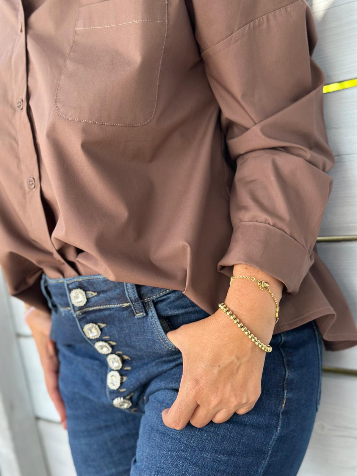 Ein kantiger Kragen, super hochwertige Verarbeitung und der kleine "living the dream" Schriftzug machen aus der Bluse etwas einzigartiges!