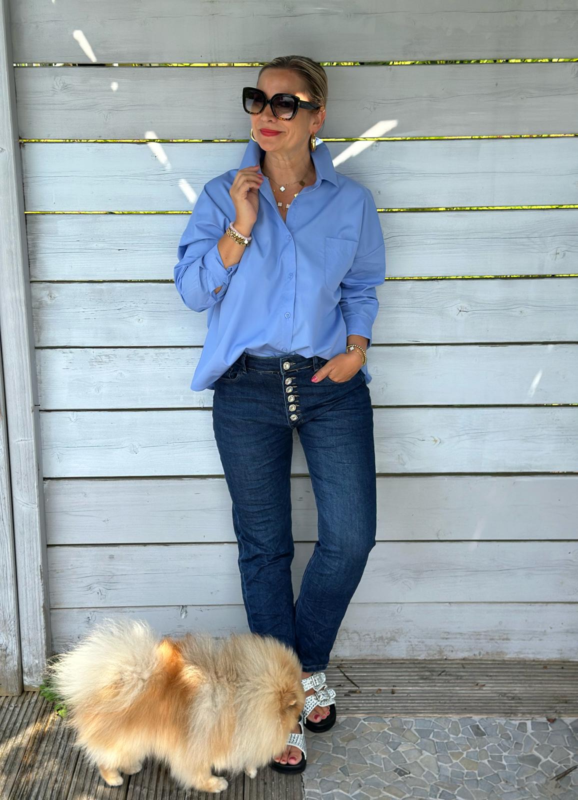 Ein kantiger Kragen, super hochwertige Verarbeitung und der kleine "living the dream" Schriftzug machen aus der Bluse etwas einzigartiges!