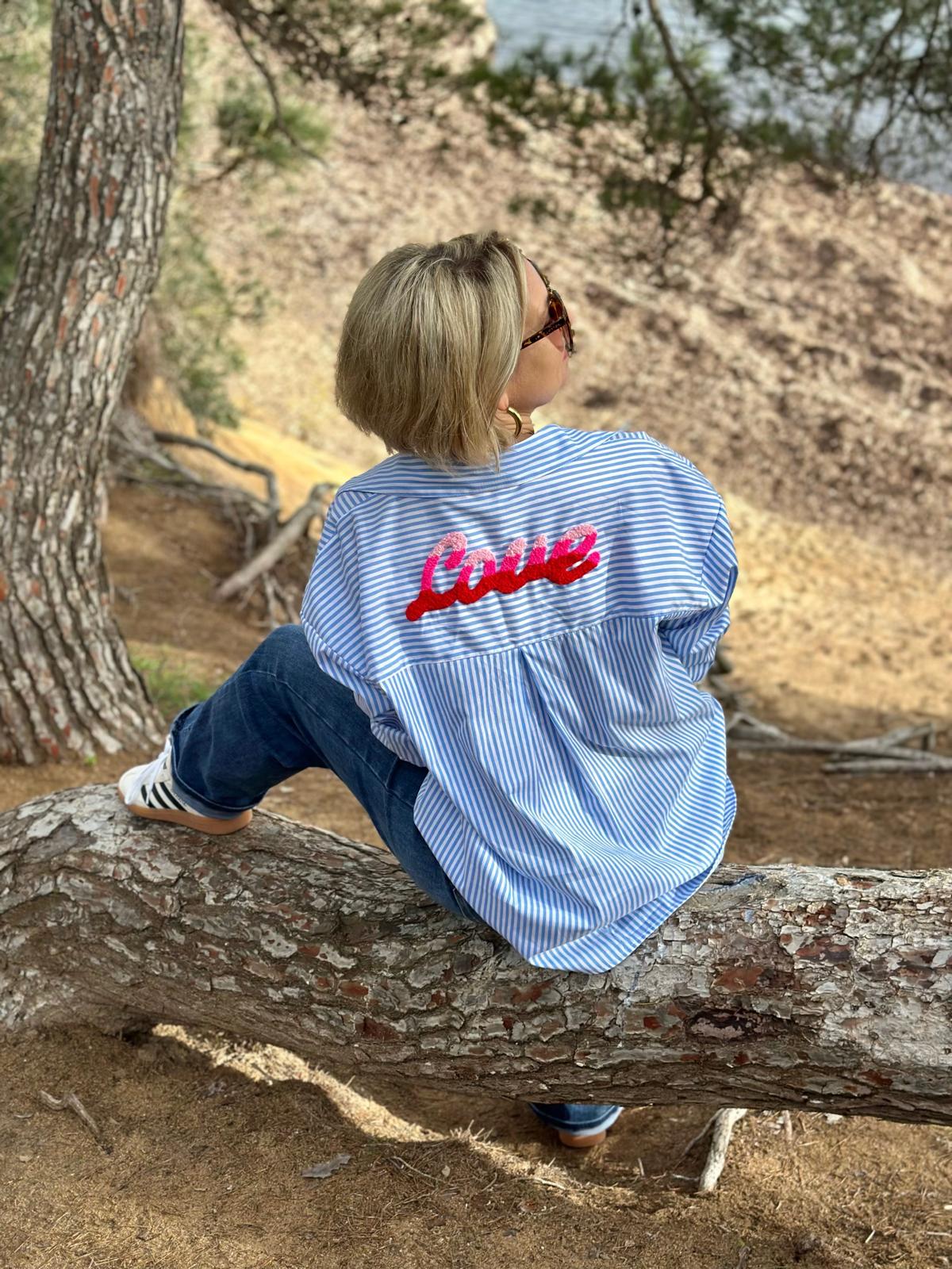 Unsere süßen Streifenblusen sind schon ein Hingucker für sich - aber gerade mit ihren wunderschönen Flockprint am Rücken sind sie ein eigenständiger Look schlecht hin!