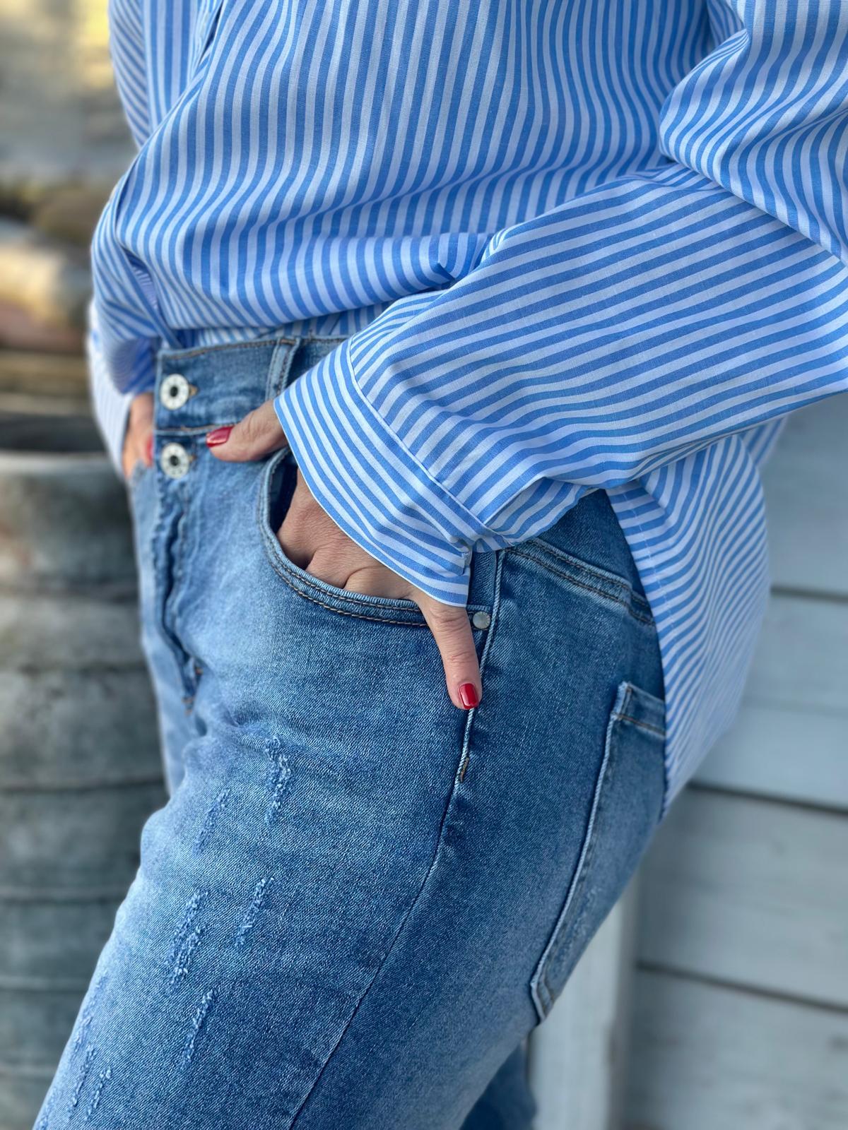 Stylische Streifenbluse "Love in the sun" in Hellblau