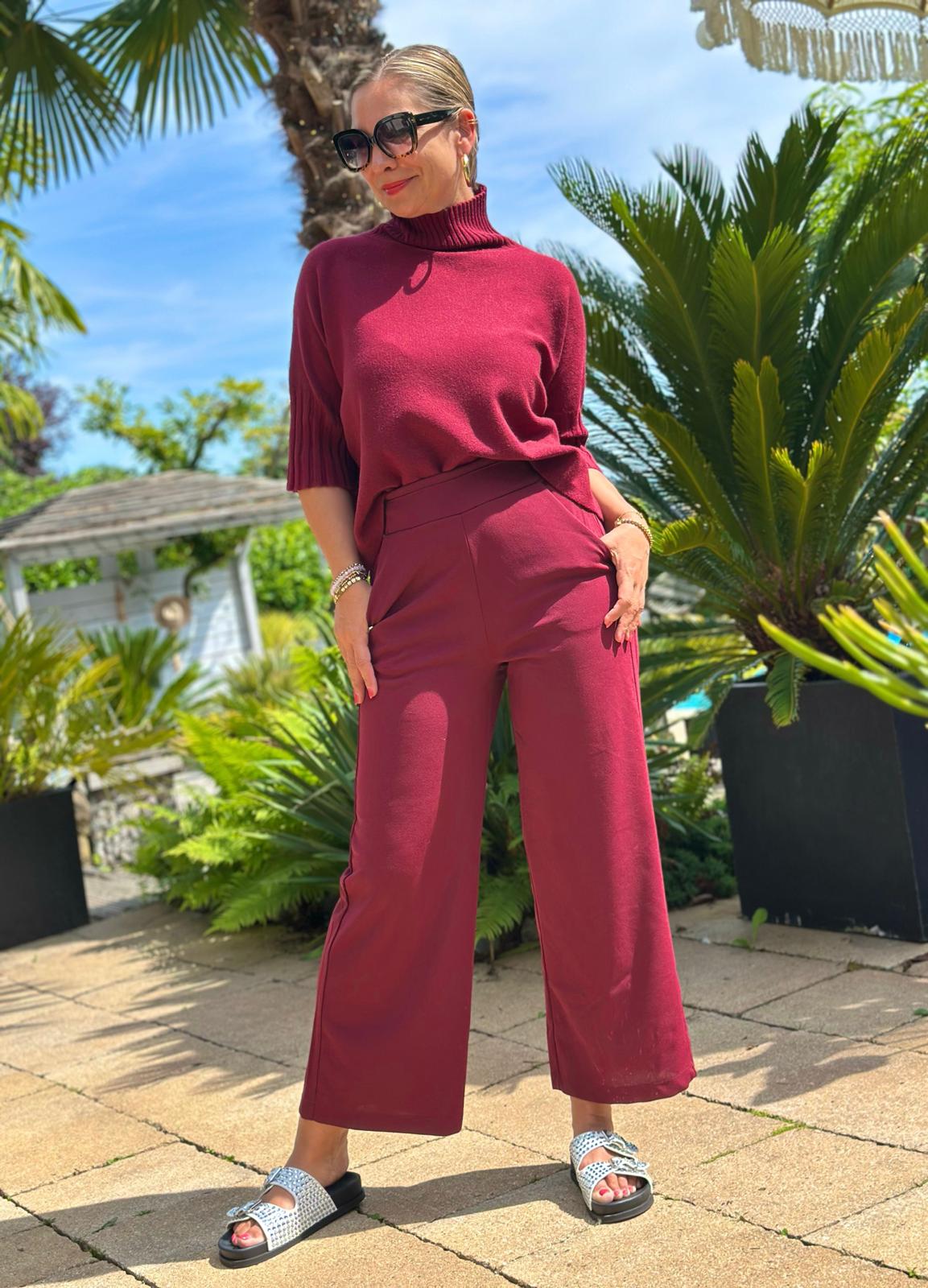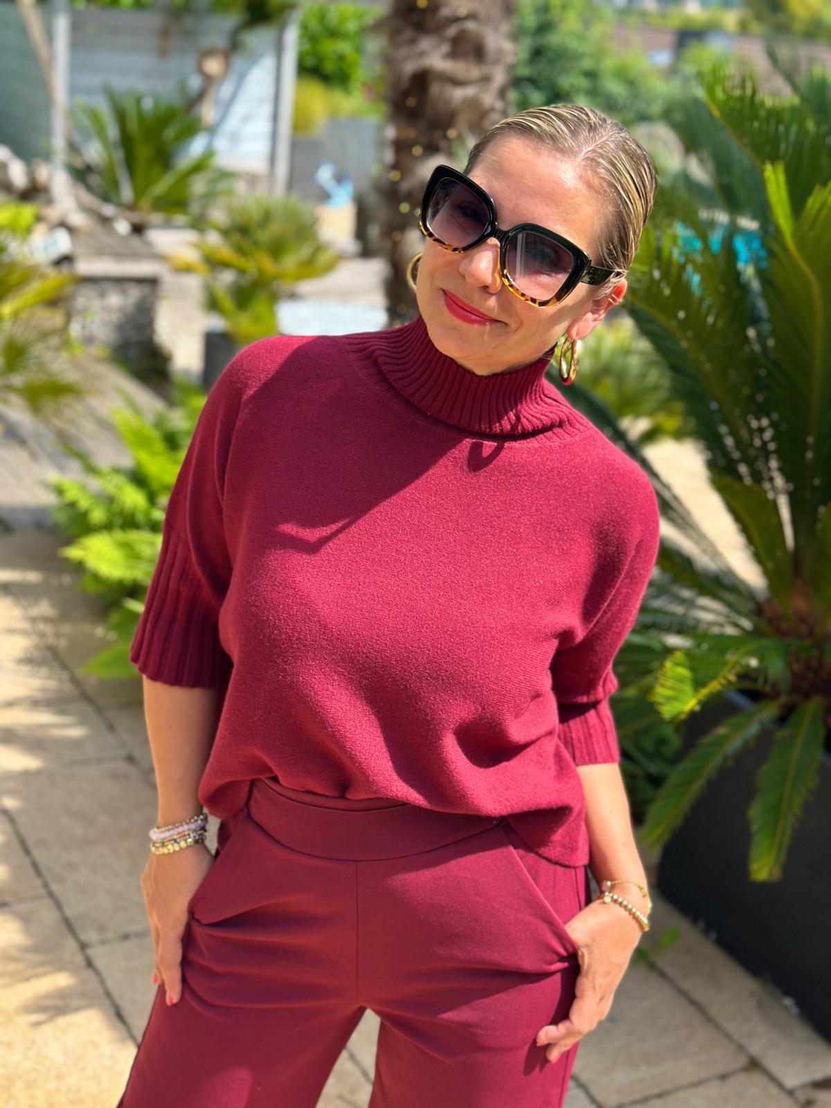 Süßer Rollkragen Pulli mit 3/4 Arm in Weinrot (kurz)
